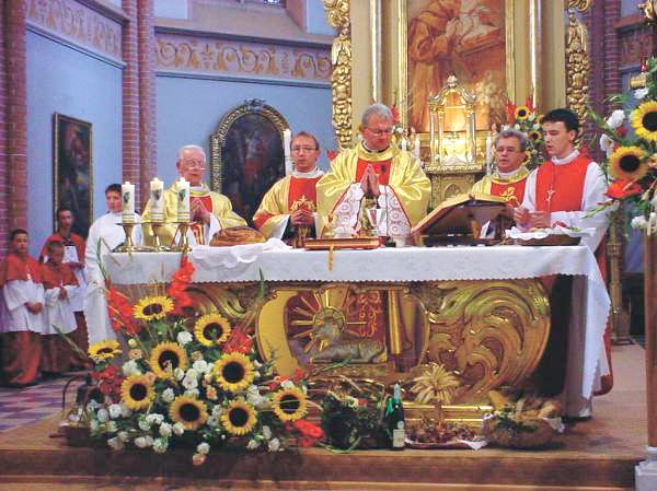poświęcenia kamienia węgielnego. Ołtarz główny zbudowano